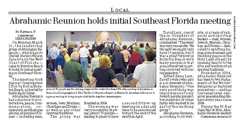 On Monday, March 21, the leadership group of Abrahamic Reunion — which has its United States office in Sarasota on the West Coast of Florida — came to Boynton Beach to hold its initial meeting in Southeast Florida.