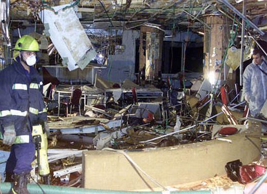 Rubble at the site of the Netanya Massacre, where 30 were killed and 140 wounded by a suicide bomber during the 2nd Intifada
