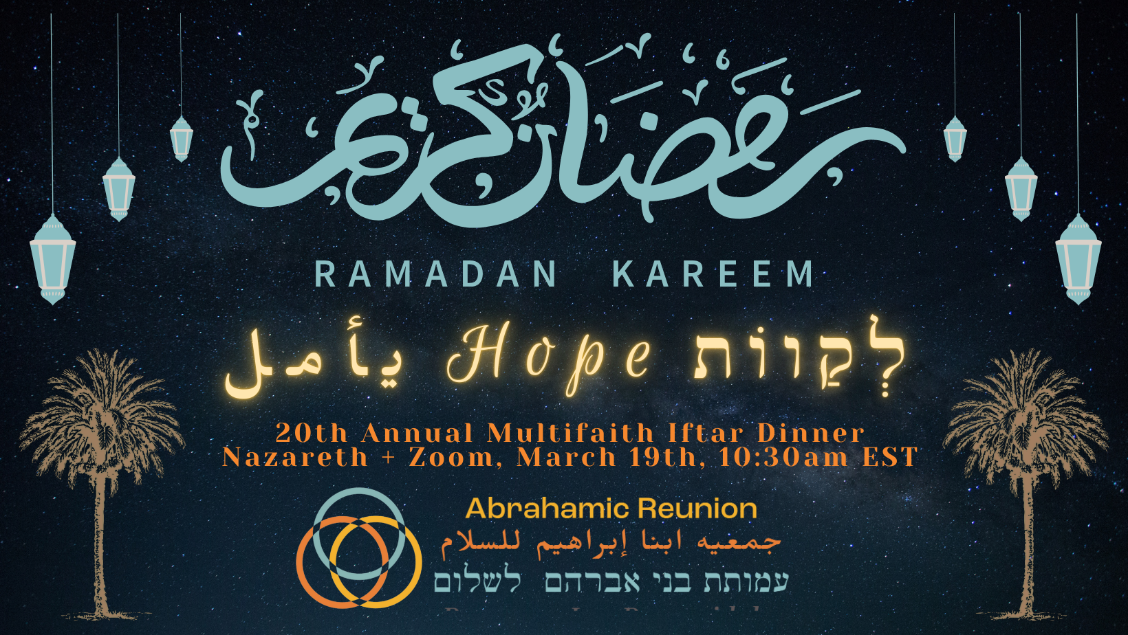 Abrahamic Reunion (AR)invites you for a truly unique, healing, and diverse Ramadan Iftar Dinner for Peace and Safety in the Holy Land — Open to all!