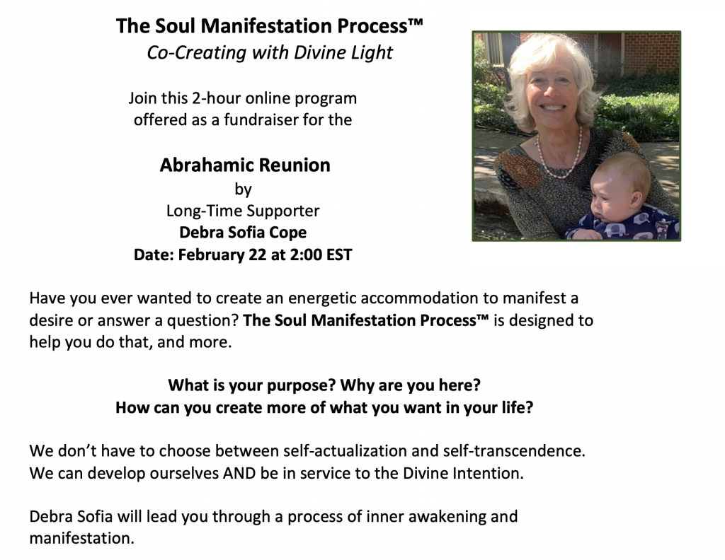Soul Manifestation Process Workshop with Debra Cope — Fundraiser for the Abrahamic Reunion