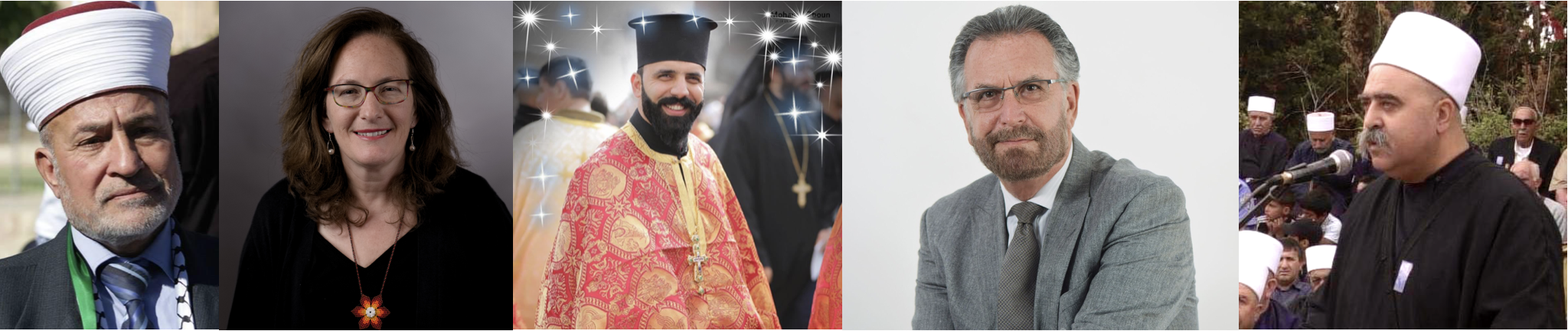 Sheikh Muhammad Salah Isaid, Father Issa Thaljieh, Rabbi David Rosen, Rabbi Ariella Graetz Bartuv, and Sheikh Mowafaq Tareef