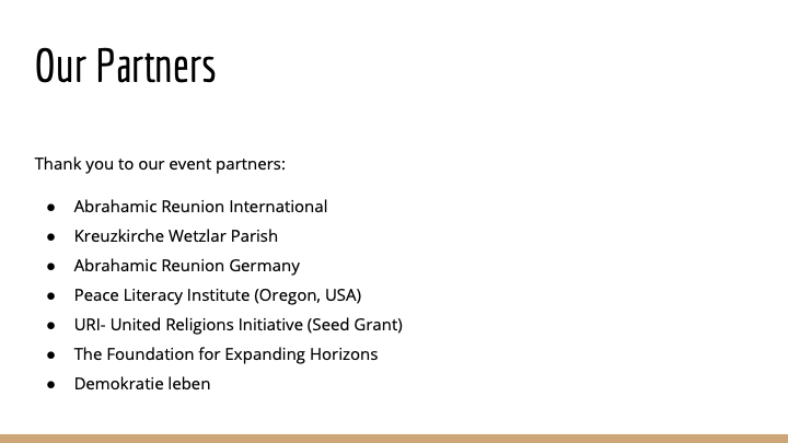 - ➢ Bjoern & Sarah Rech: Abrahamic Reunion Germany Directors, TopicalLecturers, Logistical Organization, Hosting & Local Partnerships
