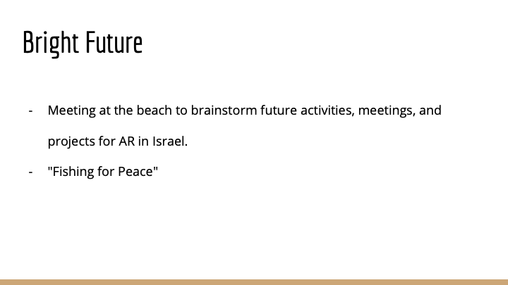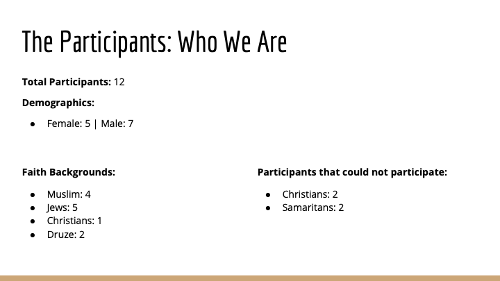 - To foster interfaith dialogue and trust between young peacebuilders from Israel and Palestine.