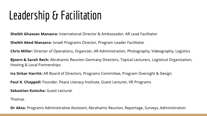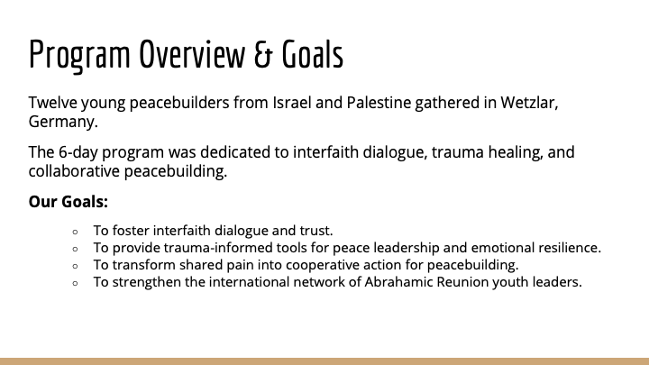 - Program Name: From Pain to Peace: Abrahamic Reunion Young Peacebuilders Training