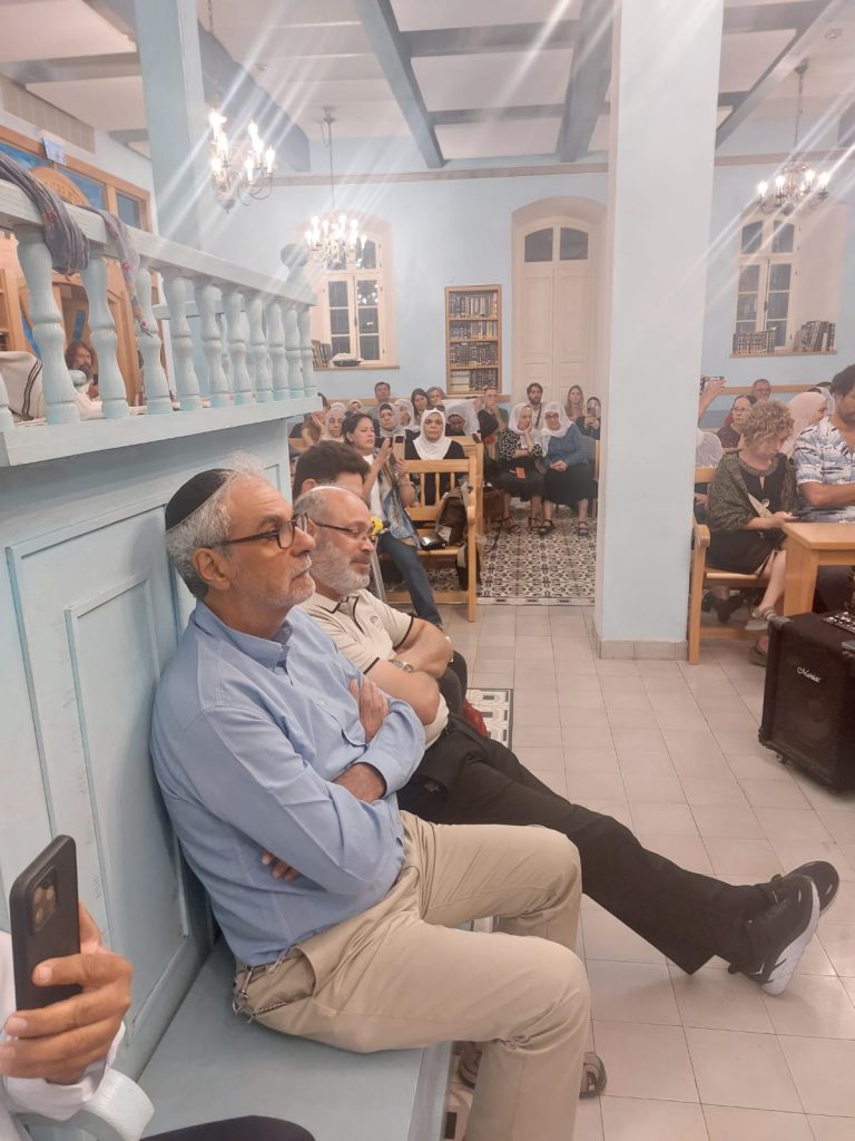 Rabbi Roberto’s synagogue welcomed inside over 100 Muslims, Jews, Christians, and Druze, who had come from Tel Aviv, nearby, and two busses of people came from the North (Daliat al Carmel, Haifa, Nazareth) and Jerusalem, both East and West.