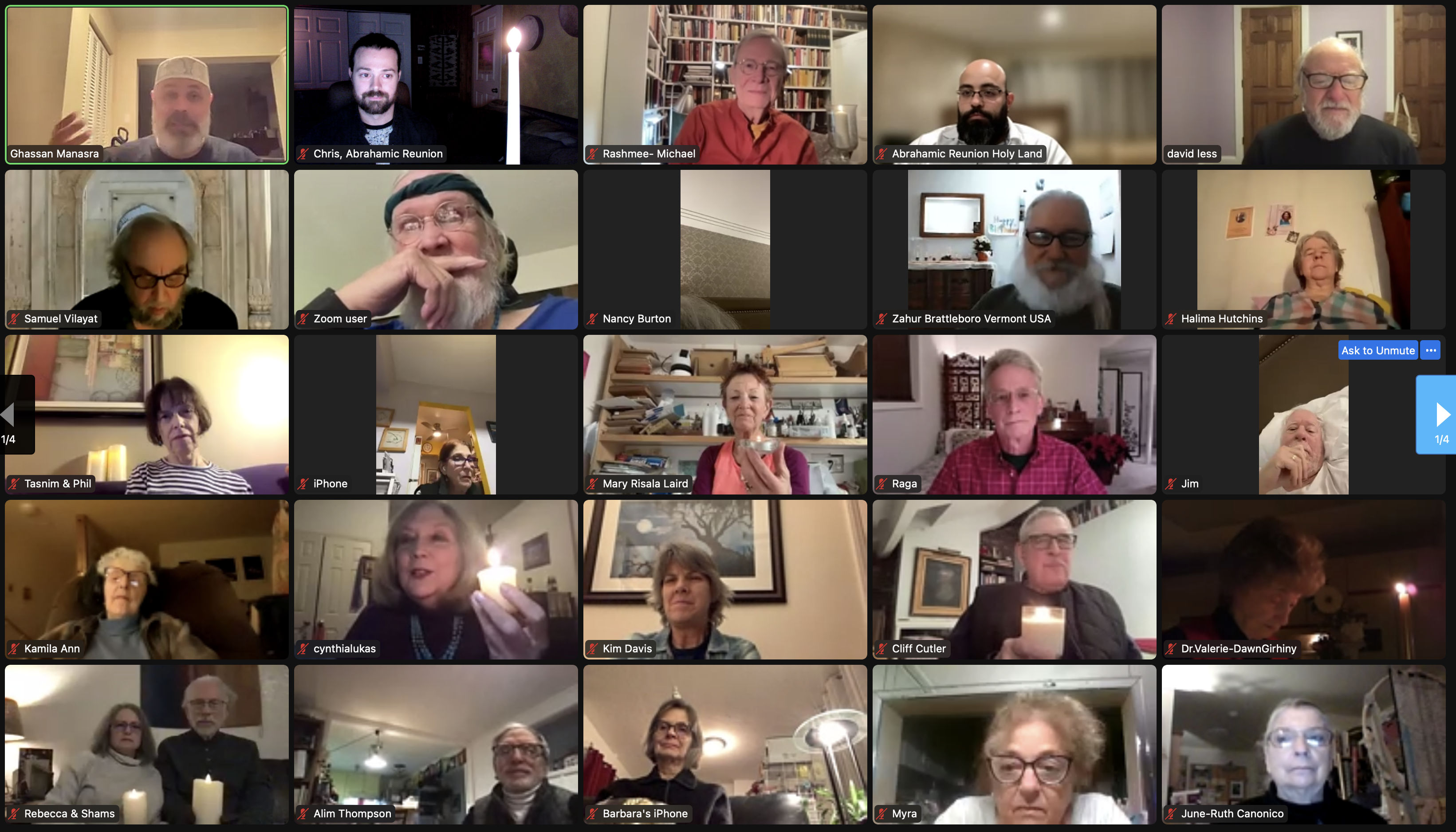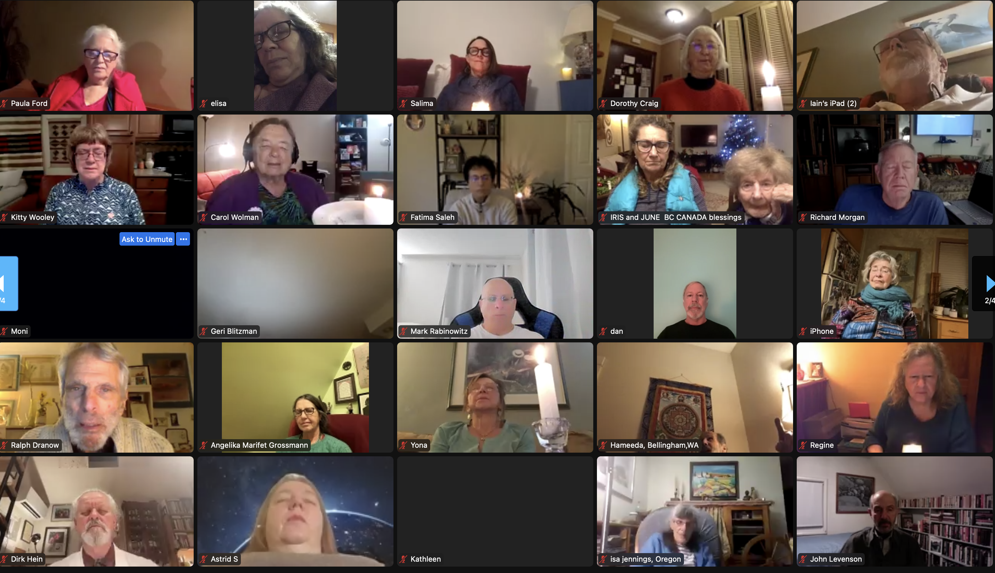 Over 100 people joined us online for the first Solstice of Peace! Many brought candles, and as Sheikh Ghassan said, “We are the candles – is that not enough?” Thank you to all who joined on zoom or by lighting a candle or joining inwardly to pray for light and peace on the longest night of the year.