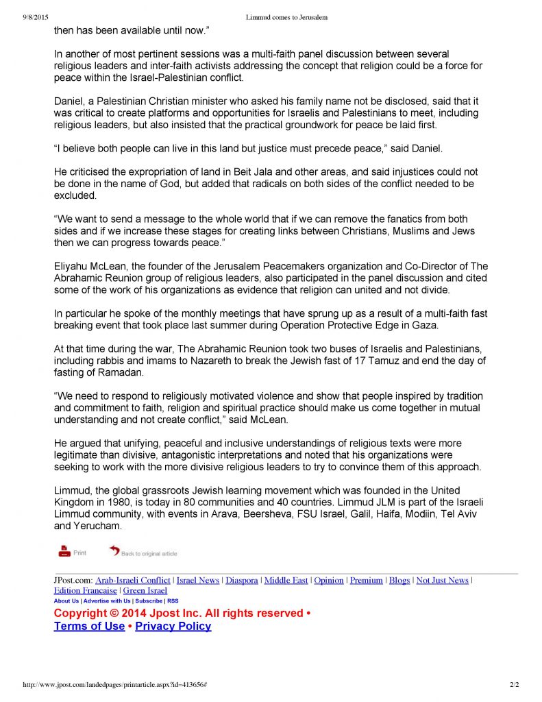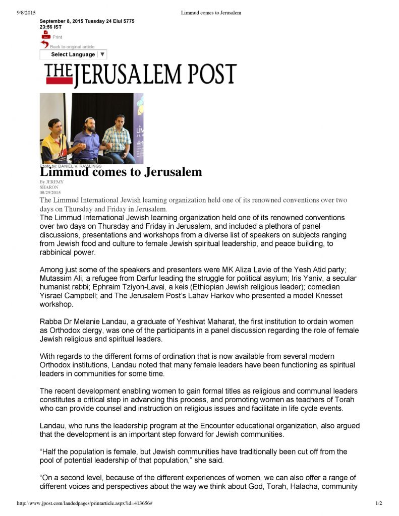 “Religious pluralism goes on display at Limmud Jerusalem” – Jerusalem Post, September 8, 2015