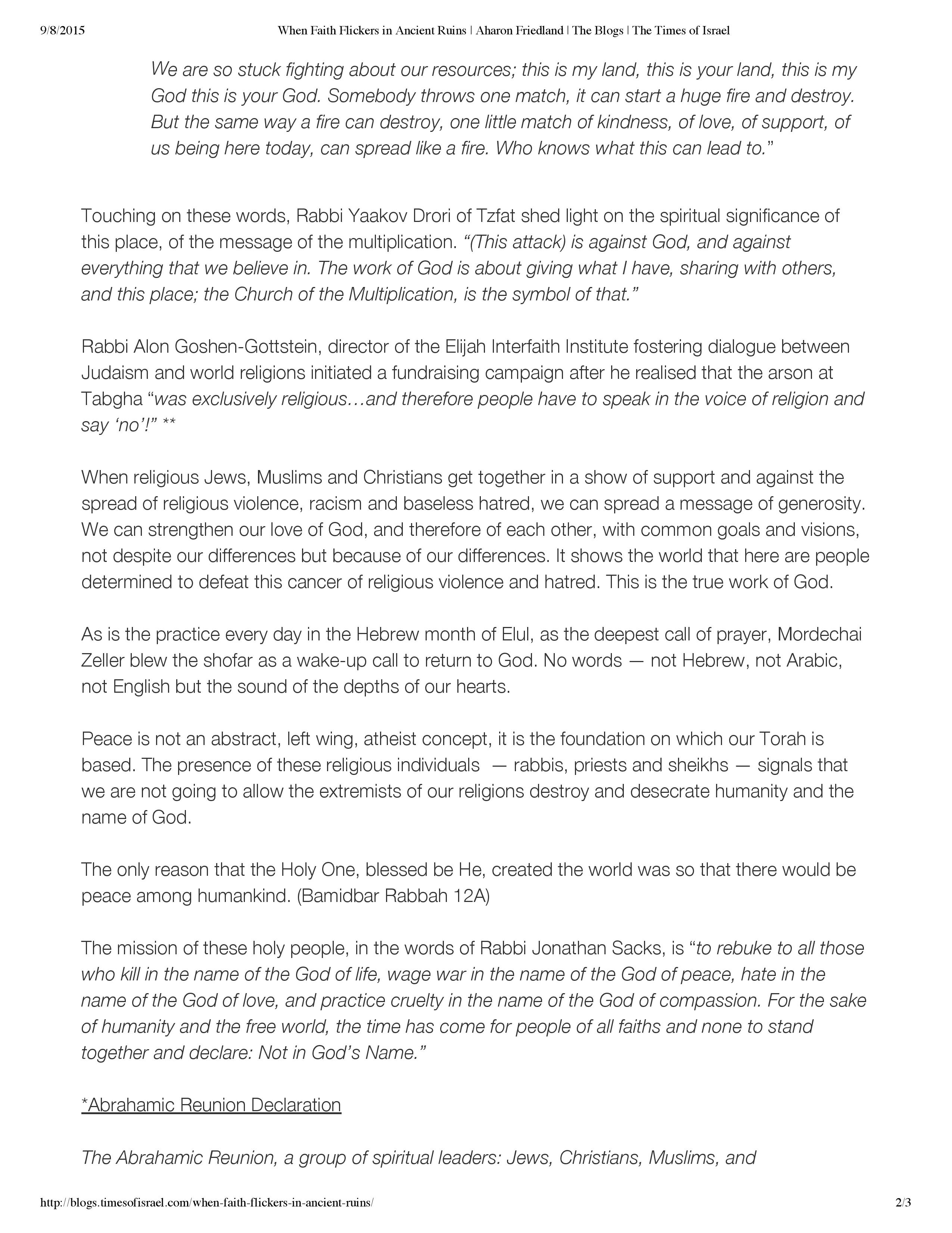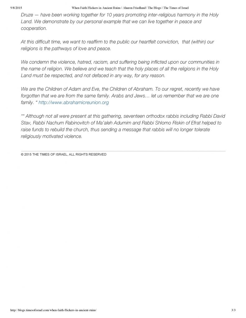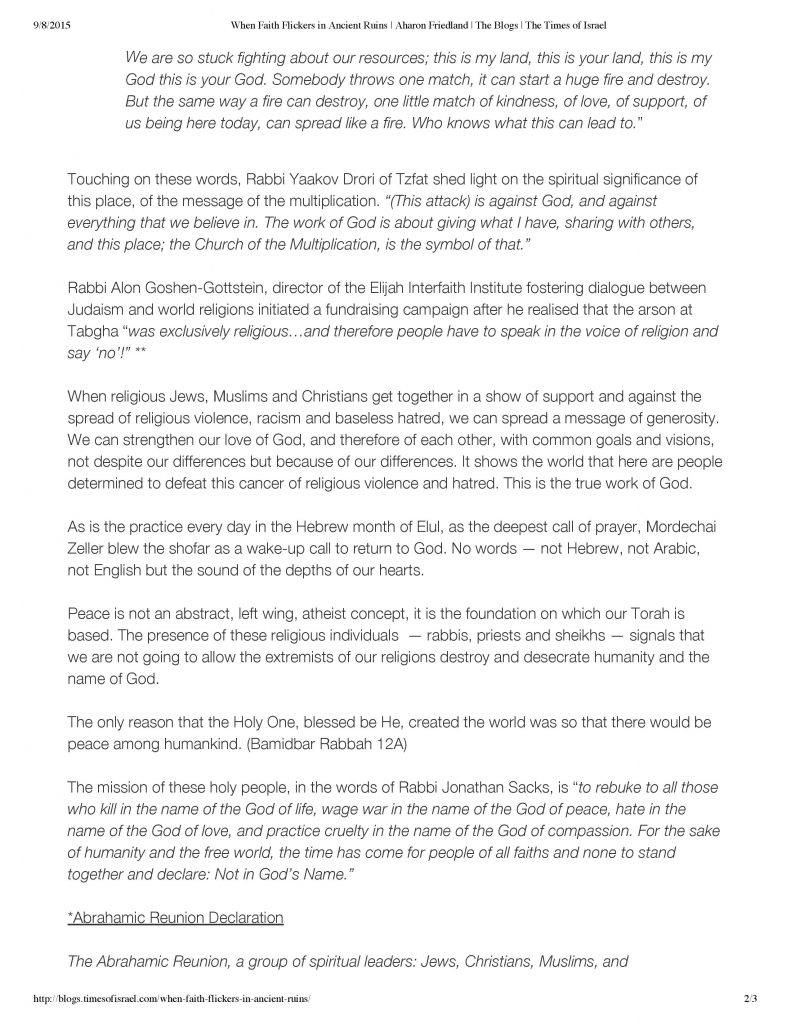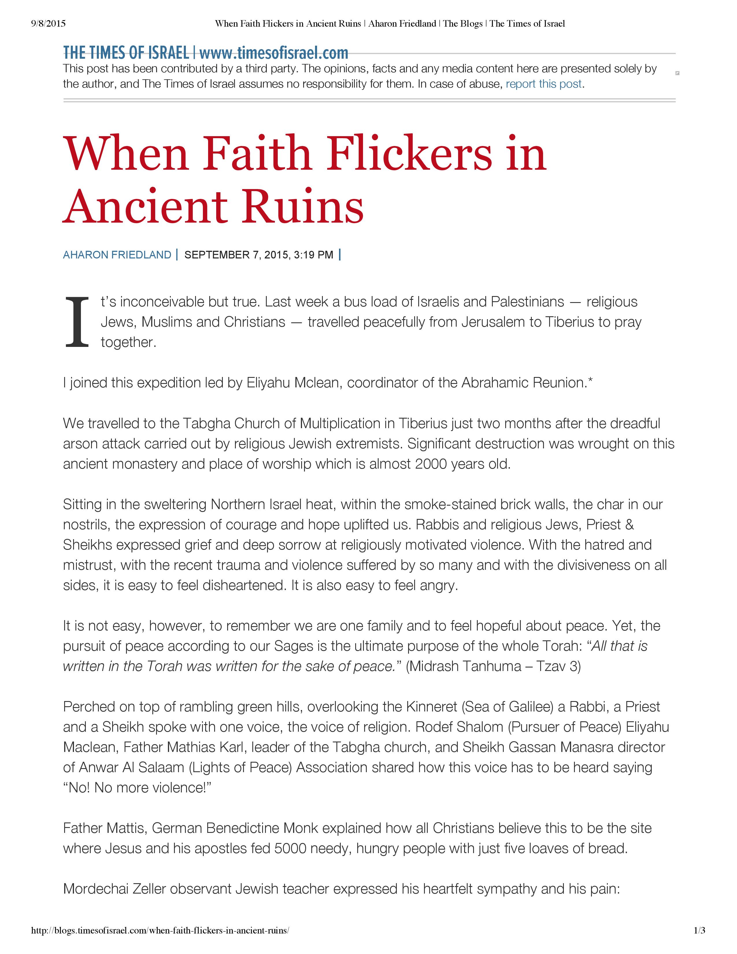 “When Faith Flickers in Ancient Ruins” – Times of Israel, September 7, 2015
